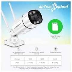 The Active Pixel 2Mp 1080P 4G Sim Card Based Wireless Waterproof Bullet Camera is A Cutting-Edge Security Solution that Brings You Peace of Mind with its Advanced Features Equipped with A Powerful 2Mp Camera, It Captures High-Resolution 1080P Video, Providing Crystal Clear Images & Recordings this Camera Boasts A 4G Sim Card Slot, Ensuring Seamless Connectivity Even in Areas Without Wi-Fi, Making It Perfect for Remote Monitoring It is Designed to Be Weather-Resistant, Boasting A Waterproof Casing that Stands Up to the Elements, Ensuring Reliable Operation in All Weather Conditions with its Innovative Color Night Vision Technology, this Camera Provides Vibrant, Full-Color Images Even in Low-Light Situations, Offering Superior Visibility & Detail the Camera is Easy to Install & Can Be Accessed Remotely Via A Smartphone App, Allowing You to Keep An Eye on your Property from Anywhere with Motion Detection, Real-Time Alerts, the Active Pixel Bullet Camera is An All-In-One Security Solution that Safeguards your Property 24/7