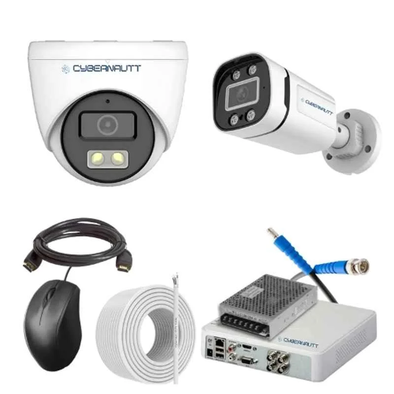 Cybernautt 2.4MP Full Colour HD Indoor & Outdoor CCTV Combo Kit with 4Ch DVR, 1 Dome Camera, 1 Bullet Camera, 4Ch SMPS, 50m Copper Cable & Connectors