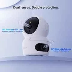 Introducing the EZVIZ H7C Dual 2k Lens Pan-Tilt Smart Wi-Fi Camera, a game-changer in the world of home security. With its advanced features and cutting-edge technology, this camera ensures that you never miss a moment. Its dual 2k lenses provide crystal-clear video quality, capturing every detail with precision. Thanks to its 360-degree panoramic view and pan-tilt capability, you can easily monitor every corner of your home. The color night vision allows for round-the-clock surveillance, even in low-light conditions. Equipped with two-way calling, you can communicate with your loved ones while on the go. The H7C supports SD cards up to 512GB, ensuring ample storage for all your recordings. Its seamless Wi-Fi connectivity makes setup a breeze, while its sleek design blends seamlessly with any indoor décor. Trust EZVIZ, a renowned brand in the industry, to deliver the highest level of security and convenience. Choose the EZVIZ H7C Dual 2k Lens Pan-Tilt Smart Wi-Fi Camera for the ultimate peace of mind.